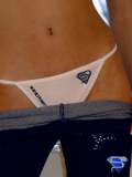 Blonde babe Denise shows off her tight ass in a Spunky Thong
